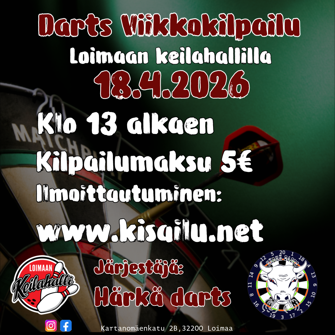 18.4.2026 Darts viikkokilpailut meillä. Ilmoittautuminen tästä