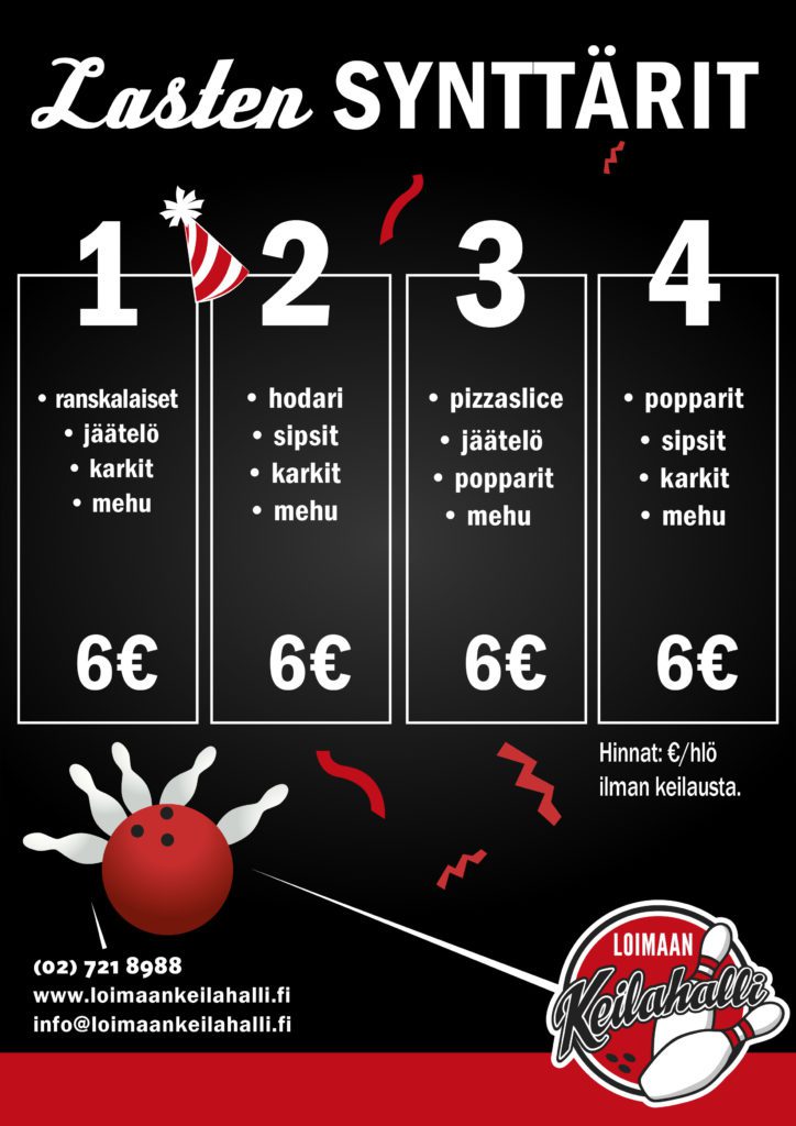 Keittiö suljetaan 30 min ennen keilahallin sulkemisaikaa.
